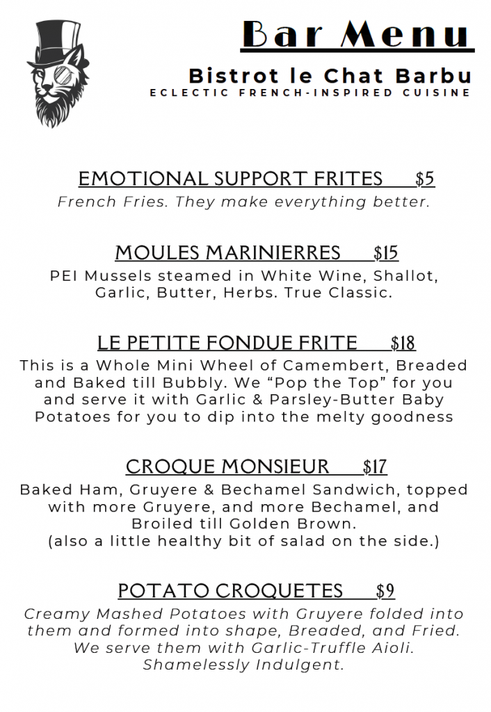 Bar Menu Served During Happy Hours and Events