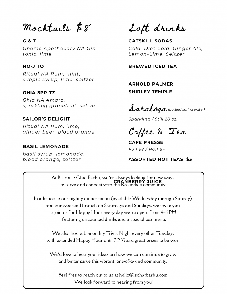 Please call (845) 658-2038 for reservations.