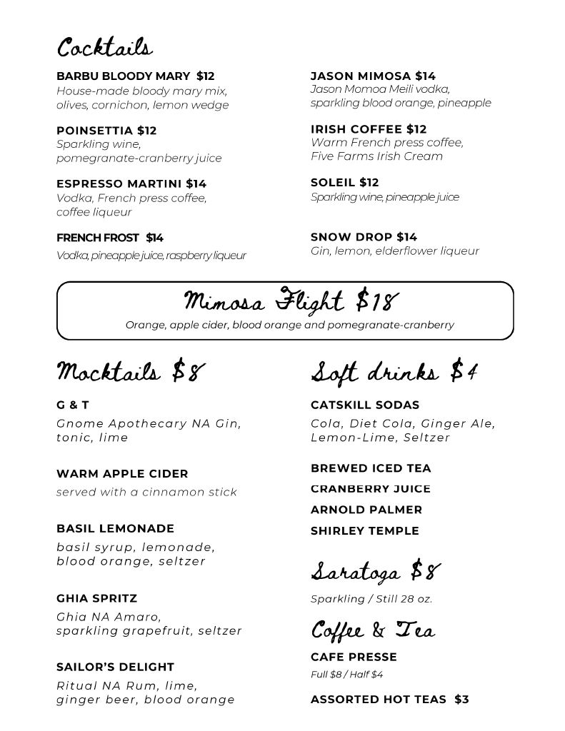 Brunch Menu Winter 2026