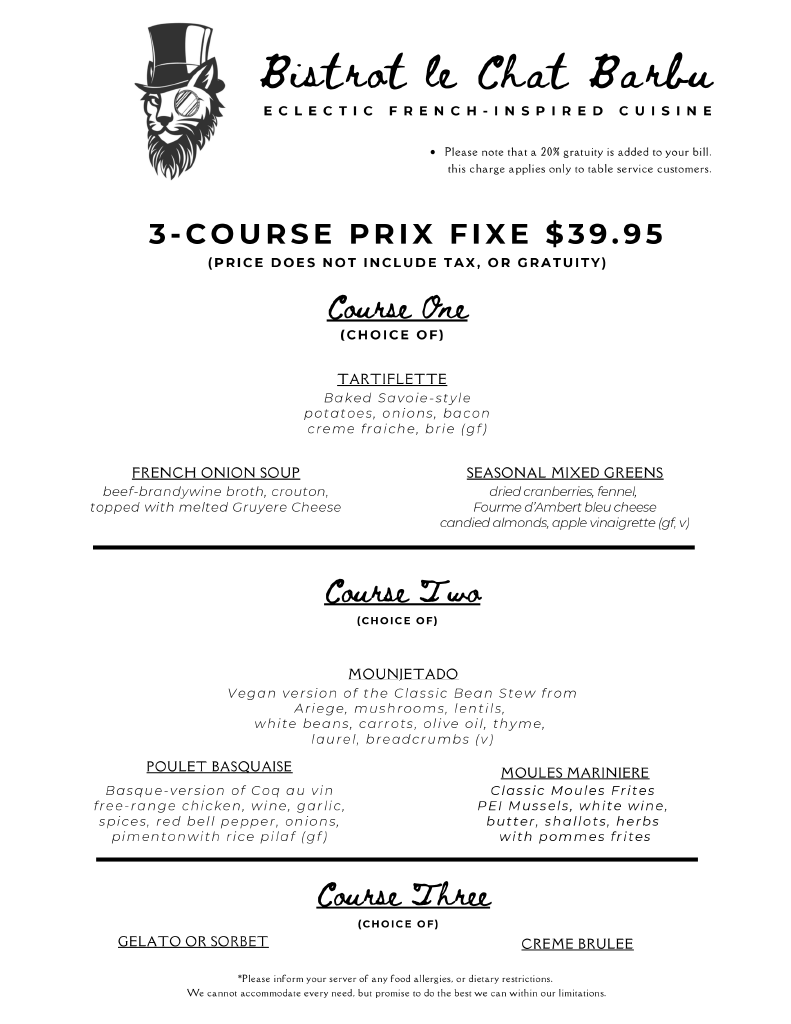 Price Fix Dinner Menu – Jan 2026